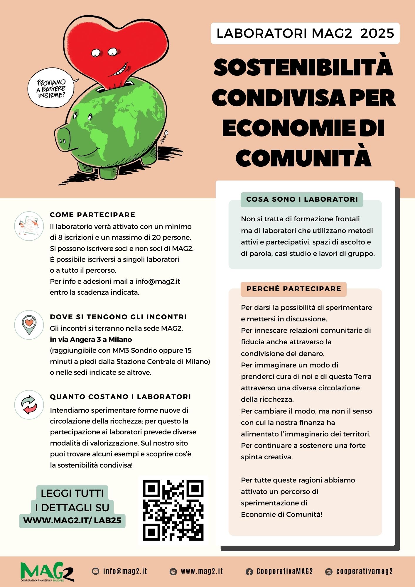 Mag2 propone sette incontri all’insegna della sostenibilità condivisa, seconda edizione del percorso di formazione partecipativo per immaginare nuove visioni per un mondo solidale e di pace basato sul rispetto di persone e ambiente.