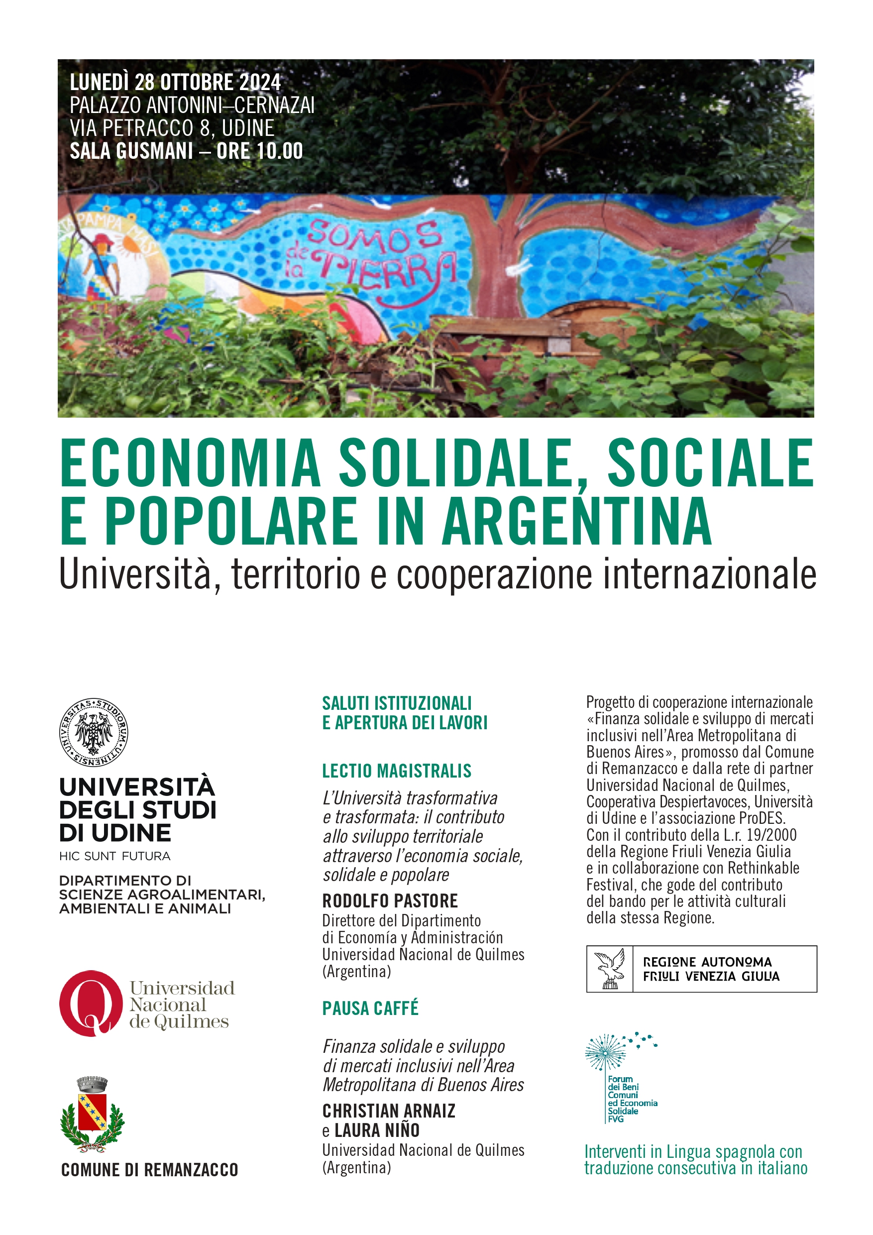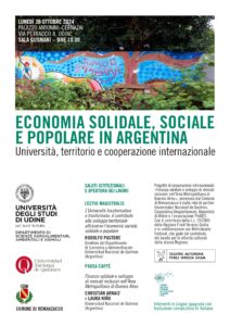 Giornata di approfondimento sull’economia solidale, sociale e popolare in Argentina, proposta dal Dipartimento di Scienze Agroalimentari, Ambientali e Animali dell’Università di Udine, in collaborazione con l’Universidad Nacional de Quilmes, la Regione Autonoma Friuli Venezia Giulia e il Forum dei Beni Comuni ed Economia Solidale, socio di Ries.