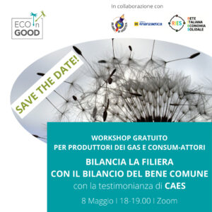 Ti aspettiamo per dimostrarti come il Bilancio permette a te produttore di comunicare e valorizzare le tue buone pratiche di economia solidale e per ascoltare la testimonianza di CAES: un’impresa dell’Economia Solidale che ha già adottato questo modello.
