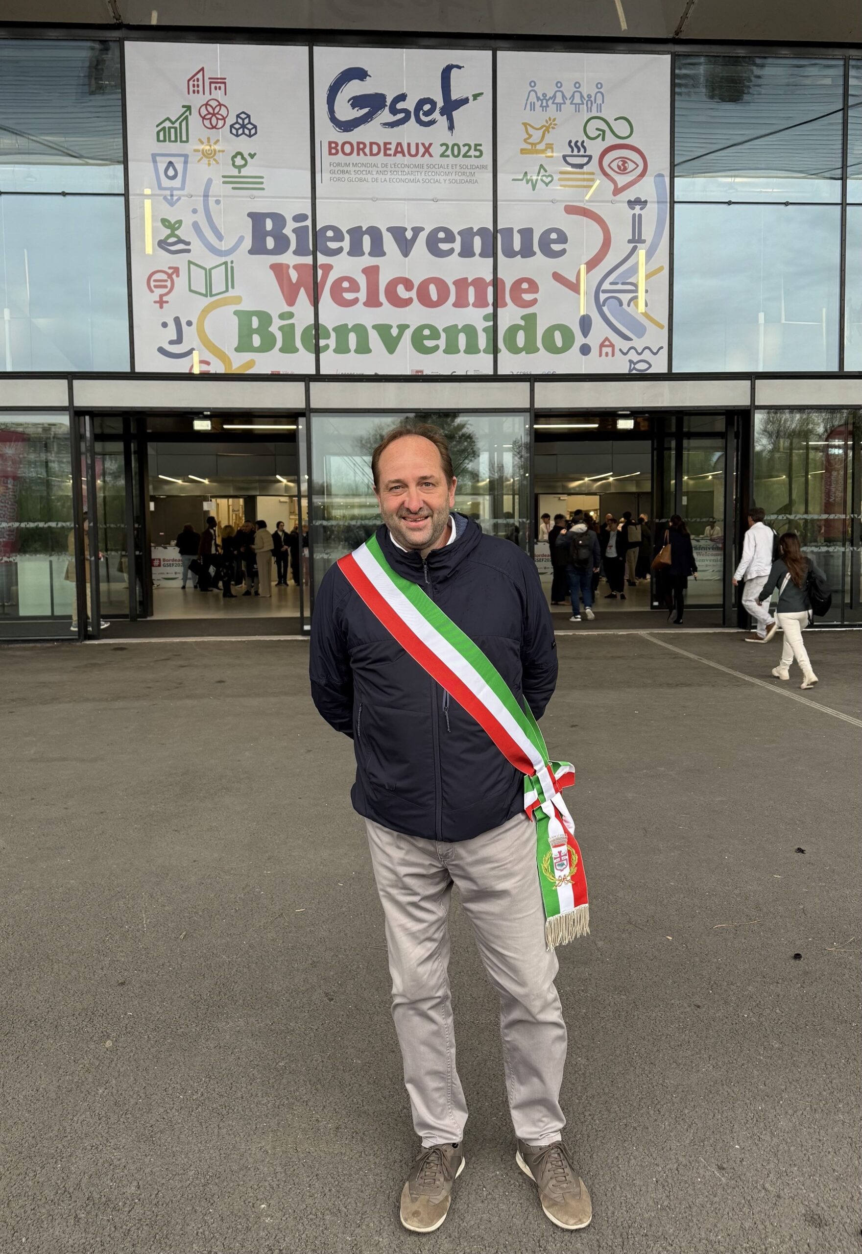 Buona parte dei dibattiti si sono sviluppati partendo dalla convinzione che i cambiamenti sistemici inizino a livello locale, attingendo a un partenariato tra la società civile e il settore privato e pubblico. Gli enti locali sono stati protagonisti, con il Comune e la Regione pienamente dentro a un movimento che ha saputo conquistare una buona legge nazionale sull’ess. Ad ogni rappresentante e’ stato chiesto di portare una parola simbolo e di presentare le proprie buone pratiche territoriali. Laparola che ho condiviso è stata “alleanze”, in particolare quelle tra enti locali e movimenti per la promozione di un territorio della cura, che si sviluppa attraverso l’attenzione alle persone e all’ambiente. Ciò che ho imparato in questi anni, con un piede nel DessBg e un altro nelle istituzioni, è proprio l’importanza delle alleanze e della intersettorialità, e quando sono diventato Sindaco ho cercato di essere un buon alleato dell’economia solidale, non considerandola una settore specifico, a parte, della nostra attività amministrativa, ma portando la visione dell’ess in tutte le direzioni. Questo approccio ha prodotto sei progetti che ho presentato a Bordeaux: buone pratiche di comunicazione dedicata attraverso la distribuzione in paese di un mensile sui temi della sostenibilità; cooperazione tra le realtà economiche solidali e l’associazionismo comunale a partire dall’organizzazione della fiera dei produttori tessili sostenibili; co-progettazione come strumento per l’affidamento dei servizi sociali e scolastici a livello comunale; nuove regole nello statuto comunale dove abbiamo inserito principi che parlano di pace, rifiuto della guerra, conversione ecologica, diritti umani, partecipazione, e nel quale abbiamo definito gli strumenti che i cittadini possono usare per partecipare alla vita comunale come i referendum, le petizioni e la possibilità di prendere parola in consiglio comunale; buone pratiche innovative come l’apertura di un centro per il riuso e il riciclo degli oggetti; energia condivisa con la creazione di una comunità energetica rinnovabile.